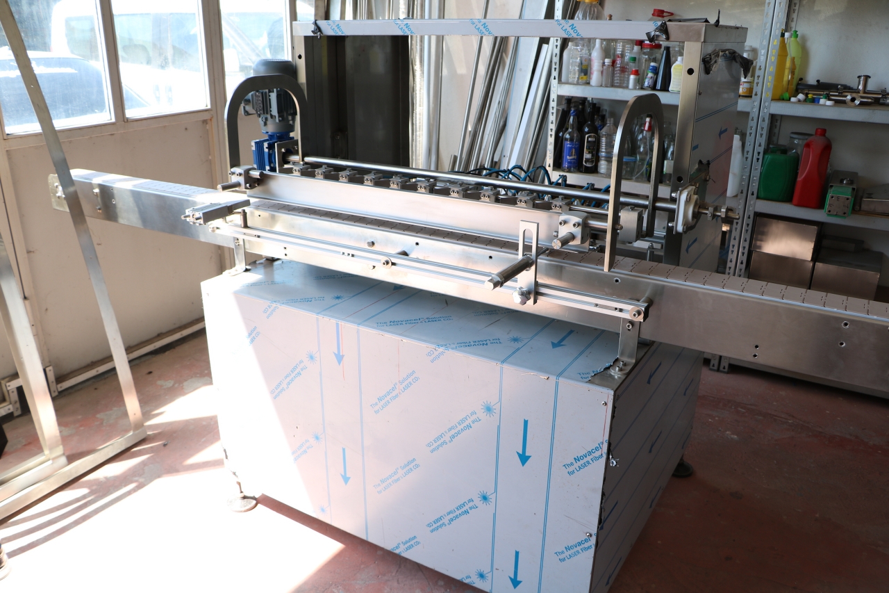 YKM/4000 The Rinsing Machine is designed to wash and dry the bottles in a lineer system by stopping the bottles and turning upside down ,the washing and drying durations are adjustable via touch screen ,
